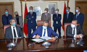وأكد أنه بالتوقيع على عقود الرحبة الريحية للصويرة، يكون المكتب الوطني للكهرباء والماء الصالح للشرب قد تمكن من تحقيق 80 في المائة من أهداف البرنامج الطموح للطاقة الريحية، لافتا إلى أن سنة 2020 تميزت بالنسبة للمكتب بالتشغيل الإجمالي للرحبة الريحية بميدلت بقدرة 210 ميجاواط وتوفير الغلاف المالي وكذا انطلاق أشغال بناء الرحبة الريحية لبوجدور 300 ميجاواط والرحبة الريحية لتازة 87 ميغاواط وكذا التوقيع على عقود الرحبة الريحية جبل لحديد اليوم.