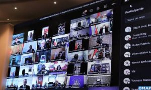 وأعرب المشاركون في  المؤتمر الوزاري ، الذي انعقد  عبر تقنية التواصل عن بعد، في خلاصات اللقاء  عن دعمهم القوي للمبادرة المغربية باعتبارها الأساس الوحيد لحل عادل ودائم للنزاع حول الصحراء.