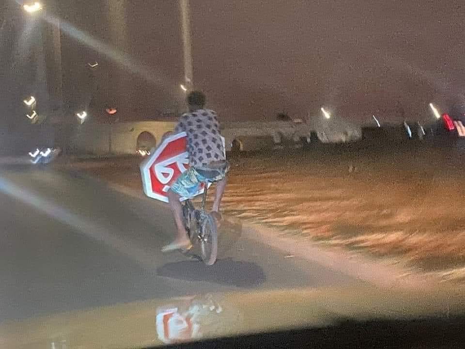 و ظهر الفاعل الموقوف من طرف عناصر الأمن وهو يحمل علامة “قف” بشكل دفع نشطاء مواقع التواصل الاجتماعي للمطالبة بتوقيفه حتى يكون عبرة لكل من تسول له نفسه سرقة علامات التشوير الطرقي والتي قد تكون سببا في عدد من حوادث السير المميتة.