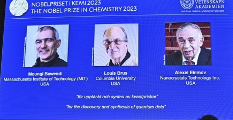 منحت جائزة نوبل في الكيمياء لعام 2023 الأربعاء في ستوكهولم إلى الباحثين الثلاثة منجي الباوندي ولويس بروس وأليكسي إكيموف، وهم علماء يعملون في الولايات المتحدة في مجال الجسيمات النانوية.