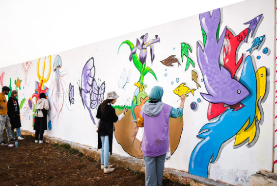 وتضمن افتتاح المهرجان، الذي جرى بحضور مجموعة من الفنانين التشكيليين والشخصيات والفاعلين في المجال الفني، إنجاز جداريات حول موضوع “حماية الثروة البحرية من مخاطر التلوث” بتوظيف لمسات فنية أمازيغية على العمل التشكيلي بالواجهة الرئيسة لدار الشباب أزغار، وهي جدارية تنضاف لمئات الجداريات الهادفة حول مواضيع البيئة والقيم والثقافة والأخلاق والتربية على المواطنة السليمة وغيرها من المواضيع المهمة المرسومة التي تحمل في طياتها رسائل مهمة بإيقاعات الريشة والألوان.