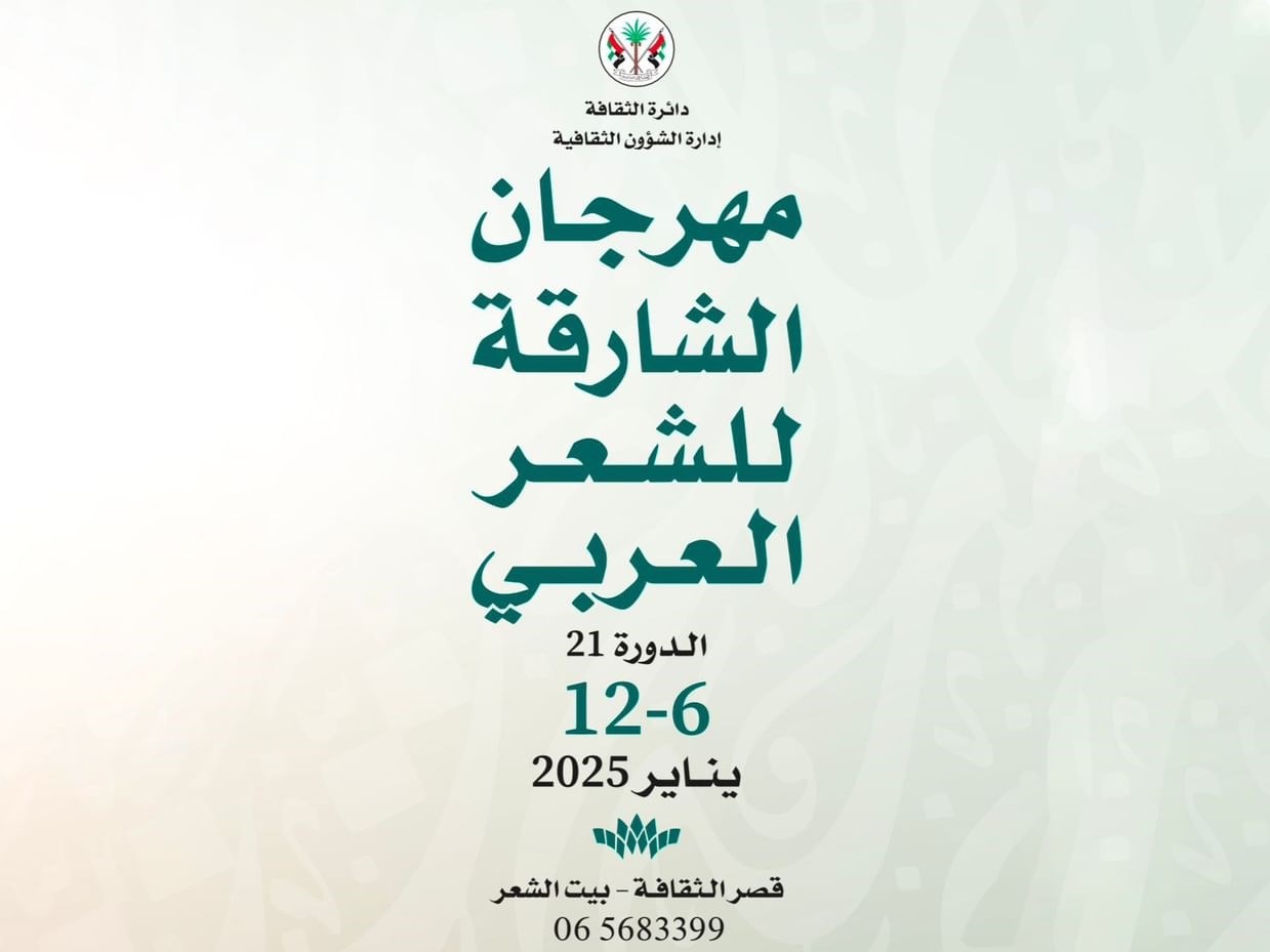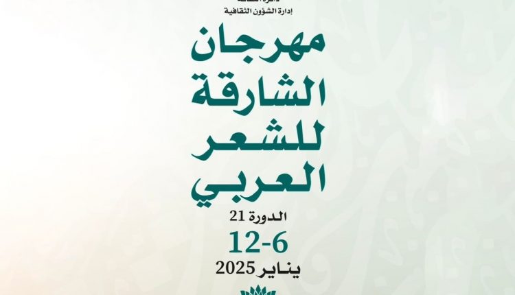 الشارقة تحتضن الدورة 21 من مهرجان الشعر العربي من 6 الى 12 يناير الجاري