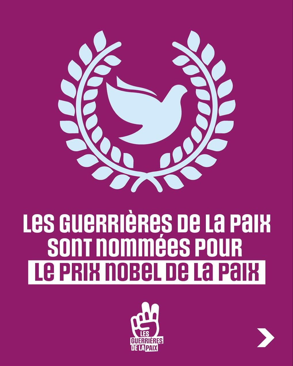 ونقل البلاغ عن مؤسسة حركة “محاربات من أجل السلام”، حنا أسولين، قولها إن “هذا الترشيح يشرفنا ويلزمنا”، معتبرة أنها “إشارة قوية موجهة إلى جميع أولئك الذين يناضلون، رغم كل الصعاب، من أجل السلام والعدالة والمساواة (…) وهي تحثنا على مواصلة الصمود جميعا أمام الكراهية والانقسامات، مهما كانت ثقافتنا وديننا أو حساسيتنا”.
