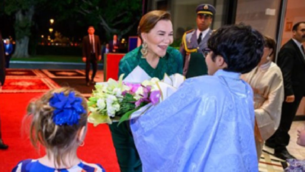 ولدى وصولها، استعرضت صاحبة السمو الملكي الأميرة للا حسناء تشكيلة من القوات المساعدة أدت التحية، قبل أن يتقدم للسلام على سموها كل من السيدات والسادة وزيرة التضامن والإدماج الاجتماعي والأسرة نعيمة بن يحيى، وسفير فرنسا بالرباط كريستوف لوكورتيي، ووالي جهة الرباط-سلا-القنيطرة عامل عمالة الرباط محمد اليعقوبي، ورئيس مجلس جهة الرباط-سلا-القنيطرة رشيد العبدي، ورئيسة المجلس الجماعي لمدينة الرباط فتيحة المودني، ورئيس مجلس عمالة الرباط عبد العزيز الدرويش، ورئيس المؤسسة الدبلوماسية عبد العاطي حابك، وكذا أعضاء لجنة المؤسسة الدبلوماسية.