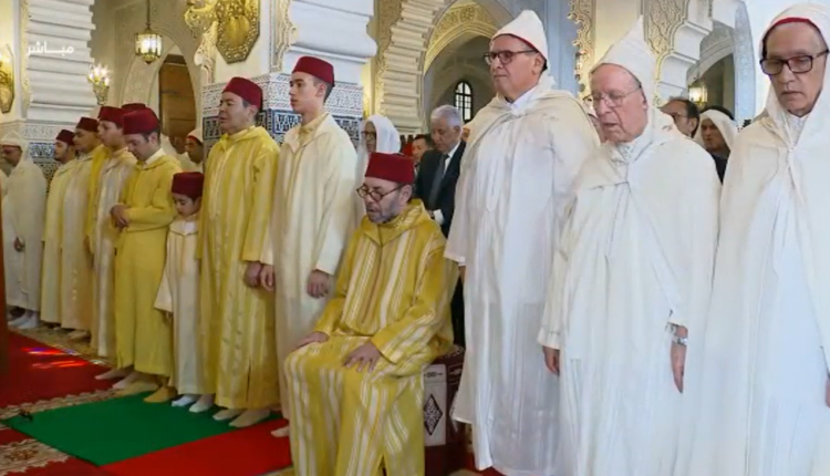 أدى أمير المؤمنين صاحب الجلالة الملك محمد السادس، نصره الله، مرفوقا بصاحب السمو الملكي ولي العهد الأمير مولاي الحسن، وصاحب السمو الملكي الأمير مولاي رشيد، وصاحب السمو الأمير مولاي أحمد، وصاحب السمو الأمير مولاي اسماعيل، اليوم الاثنين، صلاة عيد الفطر بمسجد أهل فاس بالمشور السعيد بالرباط، وتقبل جلالته التهاني بهذه المناسبة السعيدة.