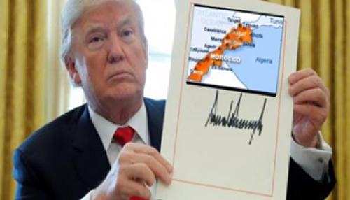 وخلال الاتصال الهاتفي الذي جرى بين صاحب الجلالة الملك محمد السادس ورئيس الولايات المتحدة الأمريكية في دجنبر 2020، كان الرئيس دونالد ترامب قد أبلغ جلالة الملك بأنه أصدر مرسوما رئاسيا، بما له من قوة قانونية وسياسية ثابتة، وبأثره الفوري، يقضي باعتراف الولايات المتحدة الأمريكية بسيادة المملكة المغربية الكاملة على كافة منطقة الصحراء المغربية.