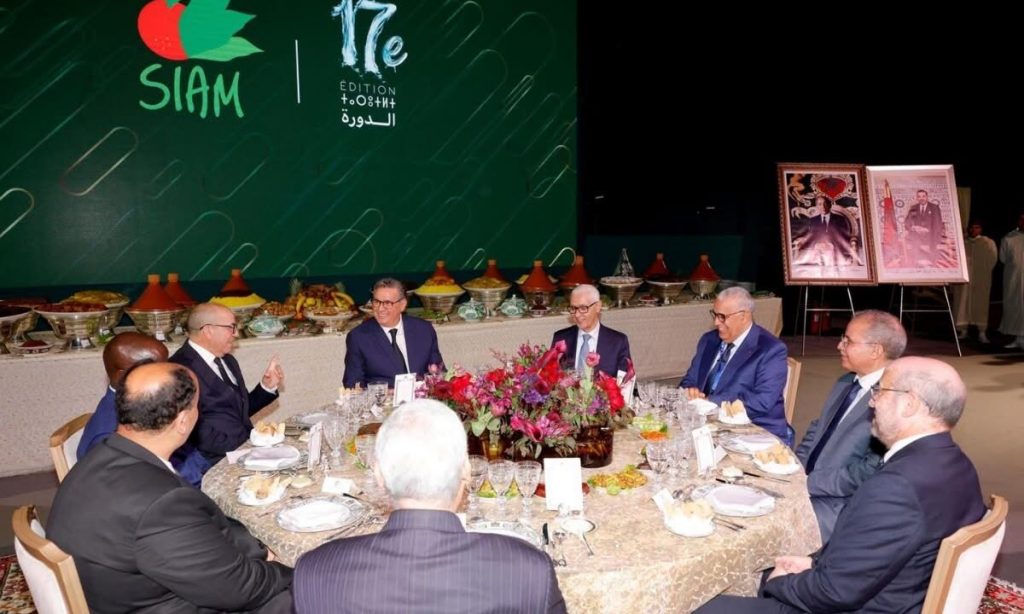 أقام صاحب الجلالة الملك محمد السادس، نصره الله،الخميس بمشور الستينية-صهريج السواني بمكناس، مأدبة عشاء على شرف المدعوين والمشاركين في الدورة الـ 17 للملتقى الدولي للفلاحة بالمغرب، ترأسها رئيس الحكومة السيد عزيز أخنوش.