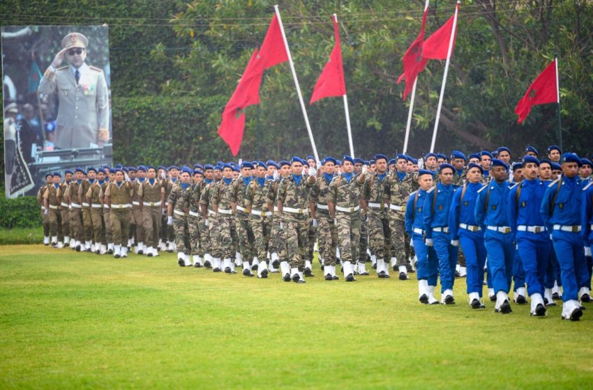 وأضاف جلالته “كما نغتنم هذه المناسبة، لننوه بما تحقق من إنجاز محمود في إطار الخدمة العسكرية، كورش وطني يتيح للشباب المغربي ذكورا وإناثا ، أداء واجبهم الوطني مستفيدين مما توفره المؤسسة العسكرية من موارد مادية ومعنوية تتيح لهم التشبع بقيم الانضباط والمثابرة والتحمل ونكران الذات، فضلا عن تأهيلهم في ميادين وتخصصات متعددة تسمح لهم بولوج سوق الشغل والمساهمة في نهضة بلدهم ومجتمعهم، معتزين بانتمائهم وبمغربيتهم، مفاخرين بتاريخ وطنهم وأمجاده، وأوفياء لملكهم ولثوابت أمتهم”.