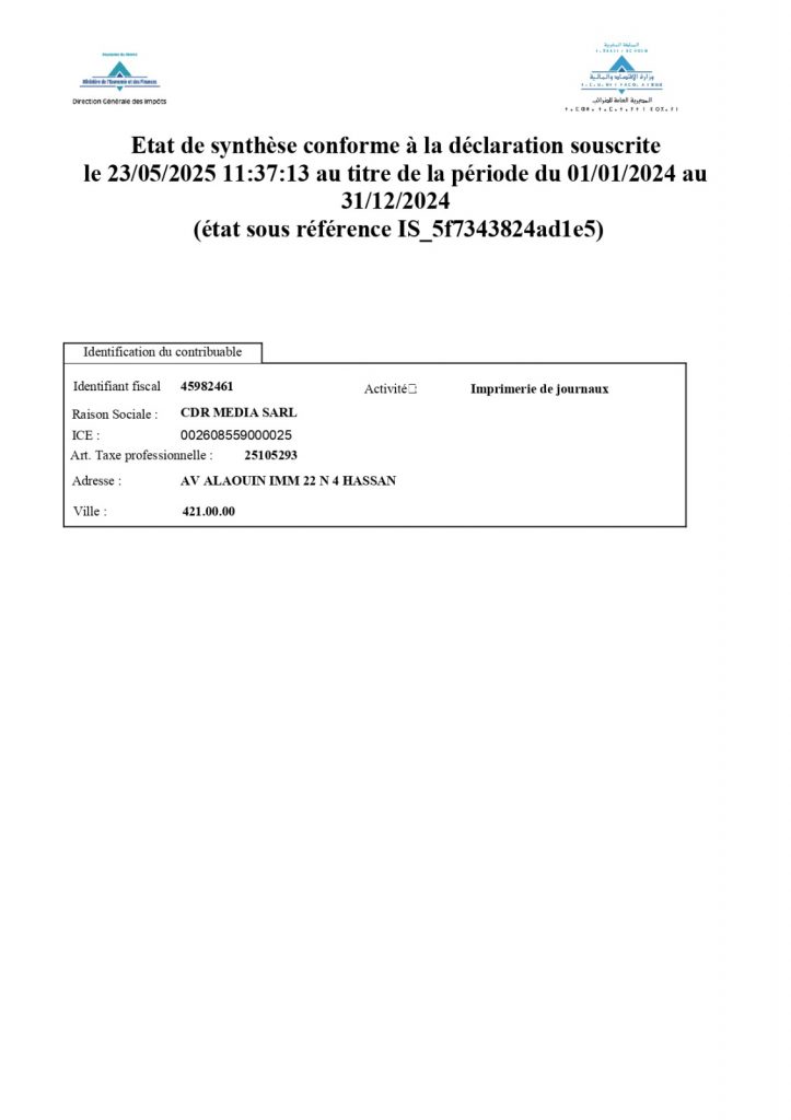 بيان الحساب السنوي لشركة ” CDR MEDIA ” برسم سنة 2024