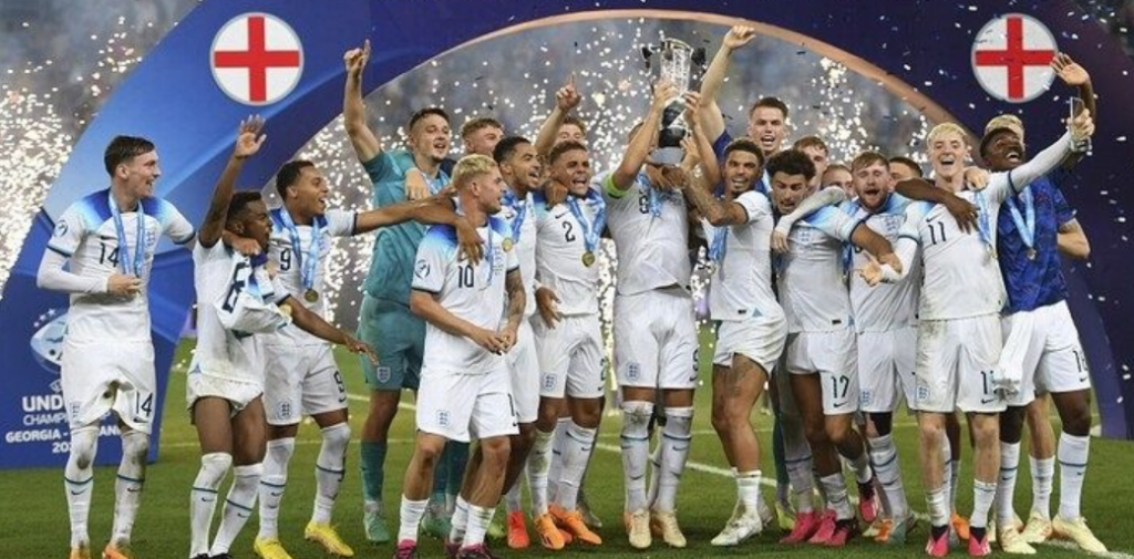 توج المنتخب الإنجليزي لكرة القدم، مساء أمس السبت، بلقب كأس أمم أوروبا للشباب لأقل من 21 عاما، عقب فوزه على نظيره الألماني بثلاثة أهداف مقابل هدفين، في المباراة النهائية للبطولة التي استضافتها سلوفاكيا.