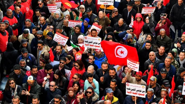 الاتحاد العام التونسي للشعل ينظم تجمعا جماهيريا وسط العاصمة احتجاجا على “كل من يستهدف الاتحاد “