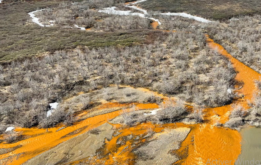 مع ذوبان التربة الصقيعية الدائمة في جبال بروكس بألاسكا نتيجة الاحتباس الحراري العالمي، بدأت سلسلة من التفاعلات الكيميائية التي تلوث الأسماك وتدمّر النظم البيئية، وأصبحت الأنهار، التي كانت في السابق صافية وصالحة للشرب، برتقالية اللون بسبب المعادن السامة.
