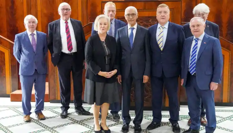 استقبل رئيس مجلس النواب راشيد الطالبي العلمي، يوم الثلاثاء 23 شتنبر 2025 بمقر المجلس في الرباط، وفدا عن جمعية قدماء البرلمانيين الإيرلنديين برئاسة السيدة Mary Flaherty، حيث يقوم الوفد بزيارة عمل للمملكة المغربية، من 22 إلى 29 من الشهر الجاري، تتخللها لقاءات وزيارات ميدانية للتعرف على الأوراش الكبرى التي انخرطت فيها المملكة المغربية تحت القيادة الرشيدة لصاحب الجلالة الملك محمد السادس نصره الله.