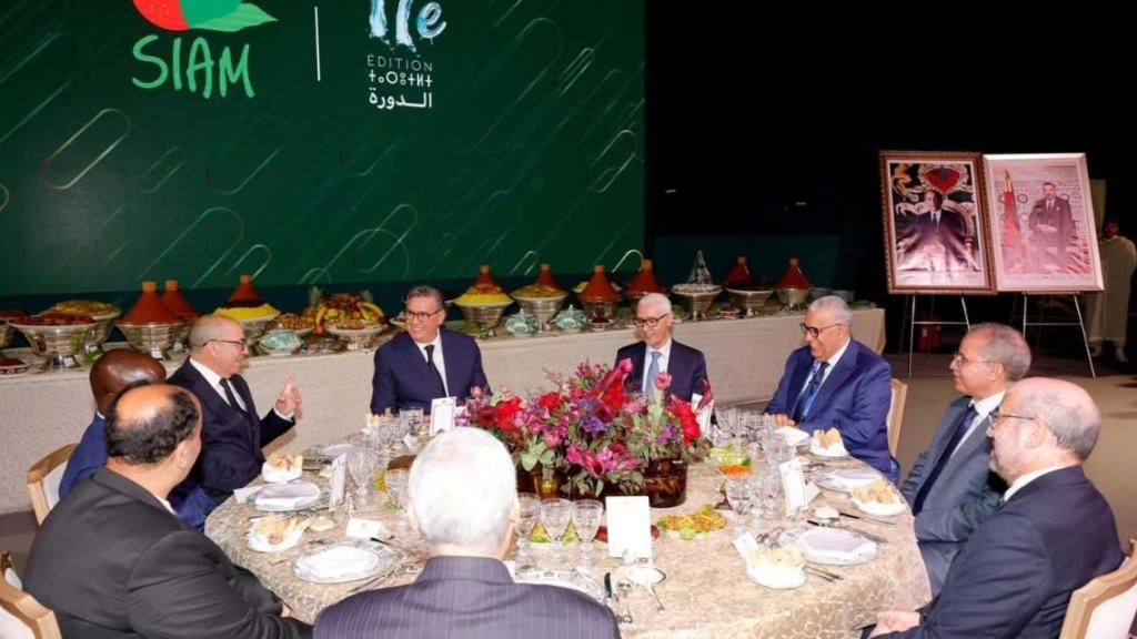 أقام صاحب الجلالة الملك محمد السادس، نصره الله، الخميس بمشور الستينية-صهريج السواني بمكناس، مأدبة عشاء على شرف المدعوين والمشاركين في الدورة الـ 18 للملتقى الدولي للفلاحة بالمغرب، ترأسها رئيس الحكومة السيد عزيز أخنوش.