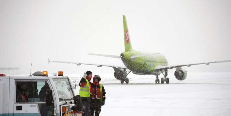 وقال مصدر من دائرة مراقبة الحركة الجوية في موسكو إن جميع الطائرات تتم معالجتها بمواد مضادة للتجمد قبل اقلاعها.