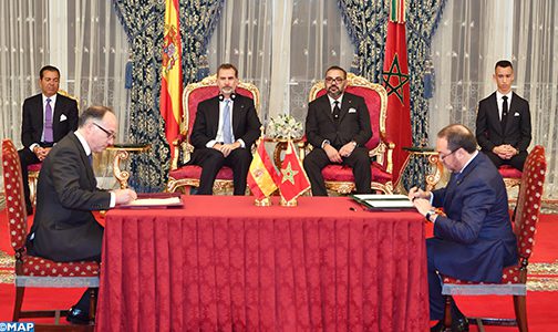 صاحب الجلالة الملك محمد السادس والعاهل الإسباني جلالة الملك فيليبي السادس يترأسان حفل التوقيع على عدة اتفاقيات للتعاون الثنائي
