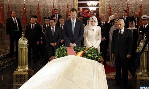 وكان عاهلا مملكة إسبانيا قد وجدا في استقبالهما لدى وصولهما إلى ضريح محمد الخامس، مؤرخ المملكة ومحافظ الضريح السيد عبد الحق المريني.