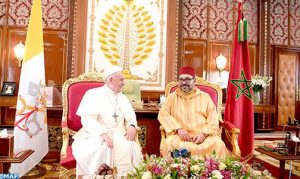 ولدى وصول البابا فرانسيس للقصر الملكي، استعرض أمير المؤمنين صاحب الجلالة الملك محمد السادس، وقداسة البابا فرانسيس تشكيلة من الحرس الملكي أدت التحية، قبل أن يقدم لضيف جلالة الملك التمر والحليب جريا على التقاليد المغربية.