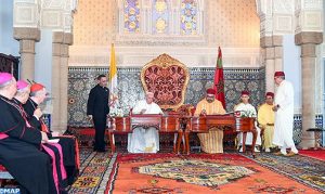 وقع أمير المؤمنين صاحب الجلالة الملك محمد السادس، رئيس لجنة القدس، مرفوقا بصاحب السمو الملكي ولي العهد الأمير مولاي الحسن وصاحب السمو الملكي الأمير مولاي رشيد، وقداسة البابا فرانسيس، اليوم السبت بقاعة العرش بالقصر الملكي بالرباط، على “نداء القدس”، الذي يروم المحافظة والنهوض بالطابع الخاص للقدس كمدينة متعددة الأديان، والبعد الروحي والهوية الفريدة للمدينة المقدسة.